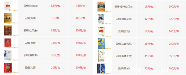 另外云煙香煙的售價覆蓋面積很大,有低到5.5元一包的香煙,也有高到100元一包的香煙,而且其中10-22元一包的香煙種類偏多,性價比就還挺高的。