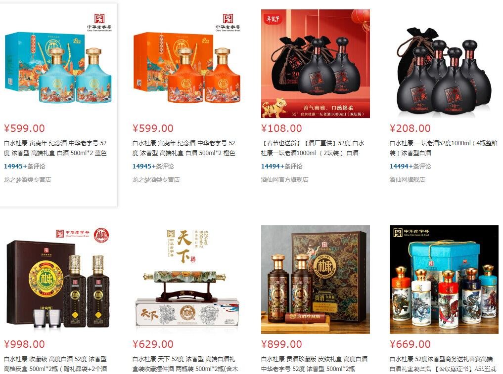 杜康酒52度價(jià)格大全