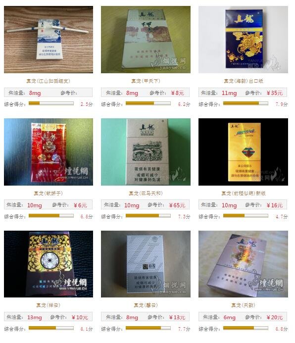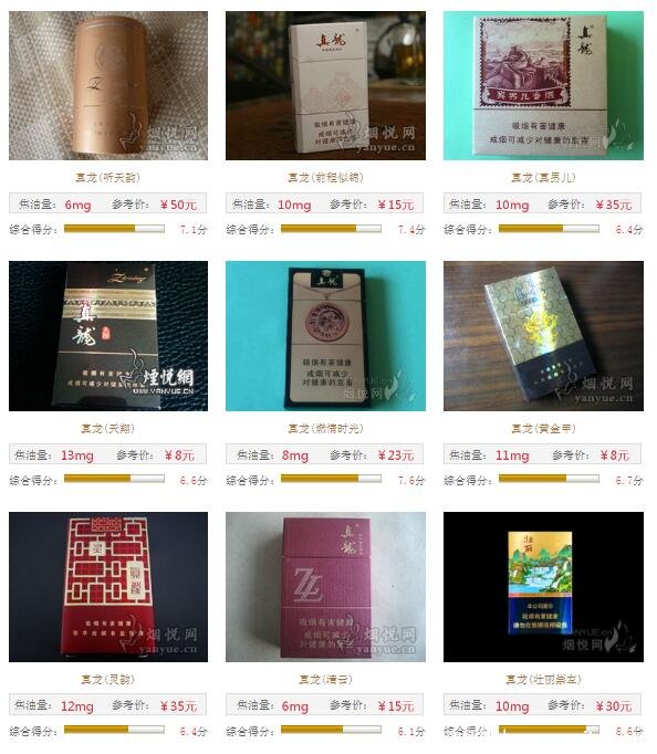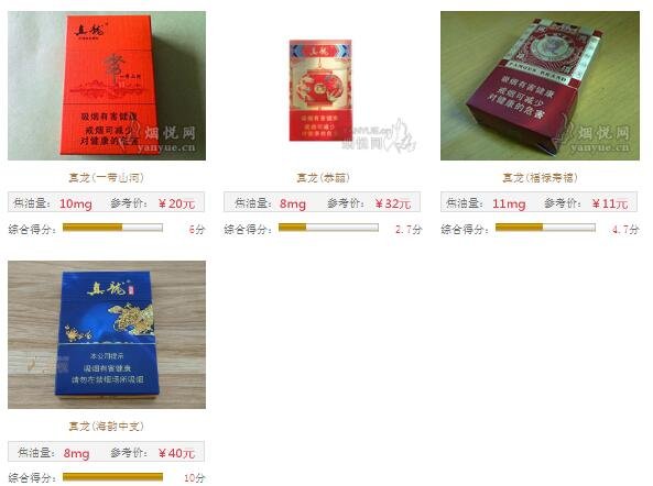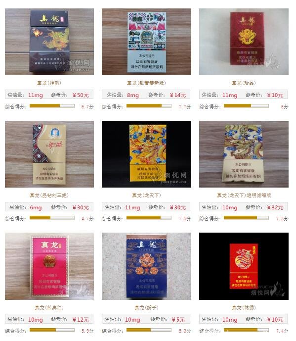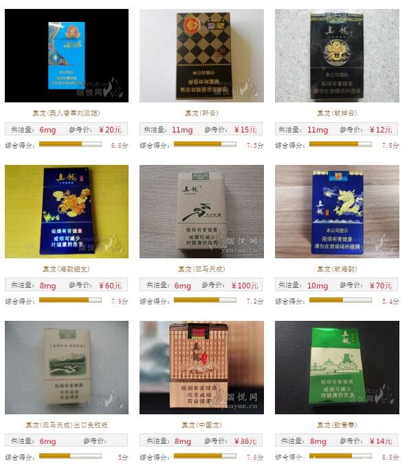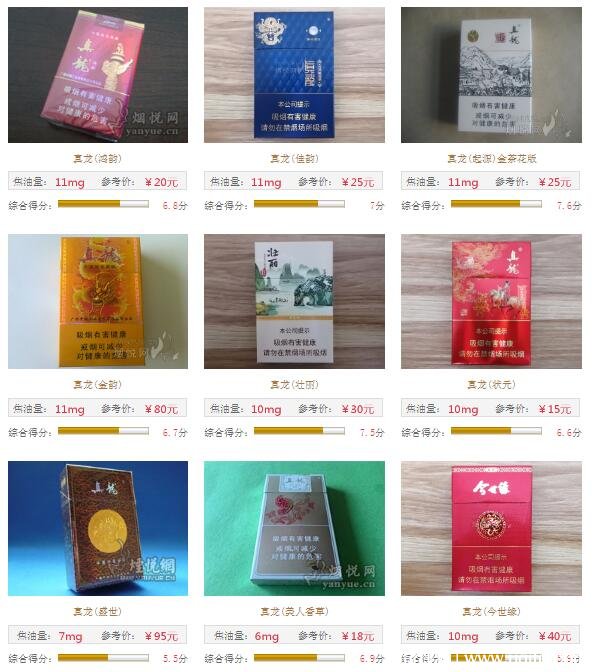 總的來說,真龍香煙單包價(jià)格在5元至100元之間,涵蓋高中低檔次,其中以一二十價(jià)位最多。