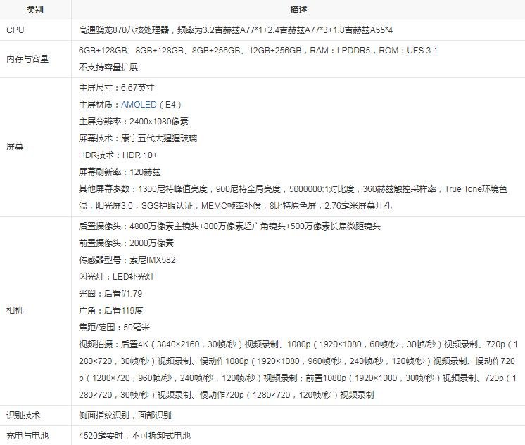 首先,在性能方面,該機(jī)搭載了驍龍870處理器,輔以LPDDR5+UFS3.1的組合,功耗和熱量控制。都還好,閃存沒(méi)有縮水,流暢使用兩三年都不是問(wèn)題。其次,該機(jī)采用了6.67英寸AMOLED屏幕,支持120Hz刷新率,三星E4夜光材質(zhì)加持,雖然LCD更護(hù)眼,但OLED顯示效果更好。