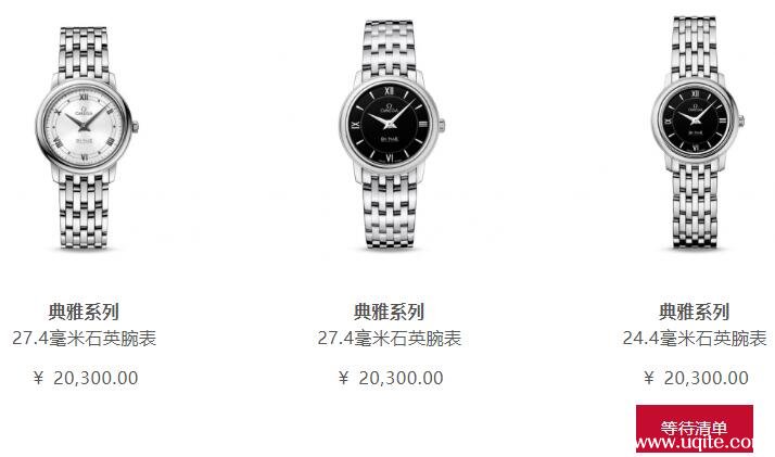 目前在歐米茄手表官網(wǎng)里,最便宜的手表價(jià)格為20300元,一共有三款,這三款是一個(gè)系列的手表,但是顏色和大小都不同,雖然這是最便宜的款式,但是從圖中也能夠看出來,這款手表的外觀是非常漂亮的,是很精致的石英腕表,非常的大方大氣,雖然價(jià)格貴,但是這款手表的價(jià)格上值這么高的價(jià)格的。