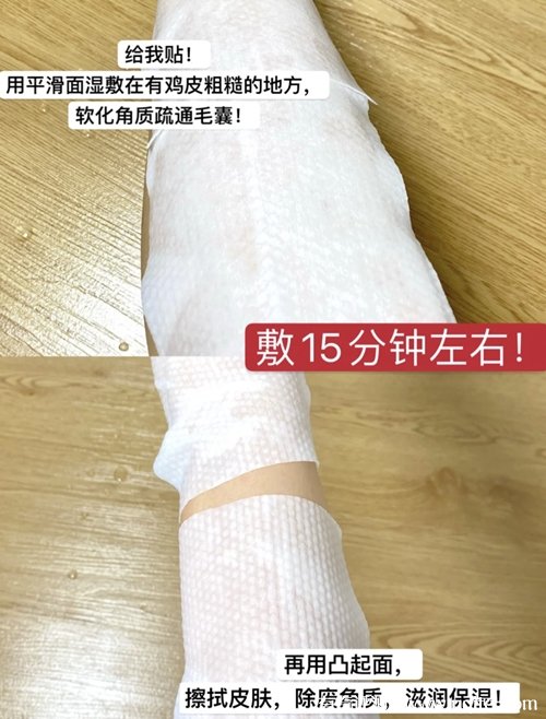 畢生之研雞皮貼我一般都是先用棉片平滑的那一面濕敷在雞皮粗糙的位置(差不多濕敷個十五分鐘左右),然后在用凸起面擦拭一下其他部位(可以有效的去除身上的角質(zhì)),這等于說給身體刷了一個酸(而且還是很溫和的那種,不會刺激皮膚),擦拭完之后再用精華乳。