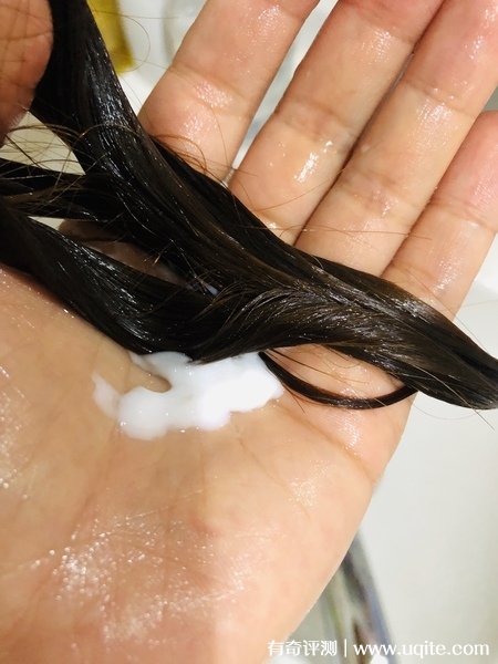 它質(zhì)地和普通護(hù)發(fā)素沒啥區(qū)別,用著滑滑的,沖洗還挺方便的,沒有那種怎么都沖不干凈的感覺。吹干頭發(fā)后,頭發(fā)依舊還是順滑的,不打結(jié),摸起來軟軟的,很舒服。