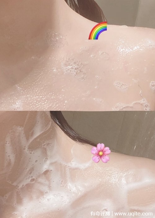 我是個(gè)大干皮,還有雞皮膚的那種,一般天天抹身體乳,但有時(shí)候也偷個(gè)懶,一天下來也不覺得干。這款沐浴露我用了有一段時(shí)間了,是感覺自己身上的皮膚變光滑了很多,摸著還有種細(xì)膩感(沒有出現(xiàn)長毛的情況)。