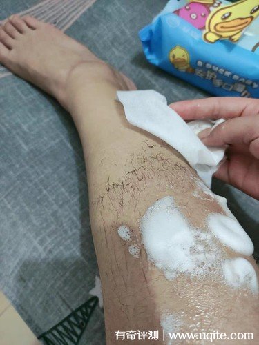 我主要是腿上的汗毛比較明顯,所以噴的也就比較多。不過使用之后的效果就還挺明顯的,每次噴完之后,等待六到七分鐘就可以用紙巾擦掉。這時(shí)就能看到腿毛和泡沫一起被擦走了,而且沒有疼痛感。