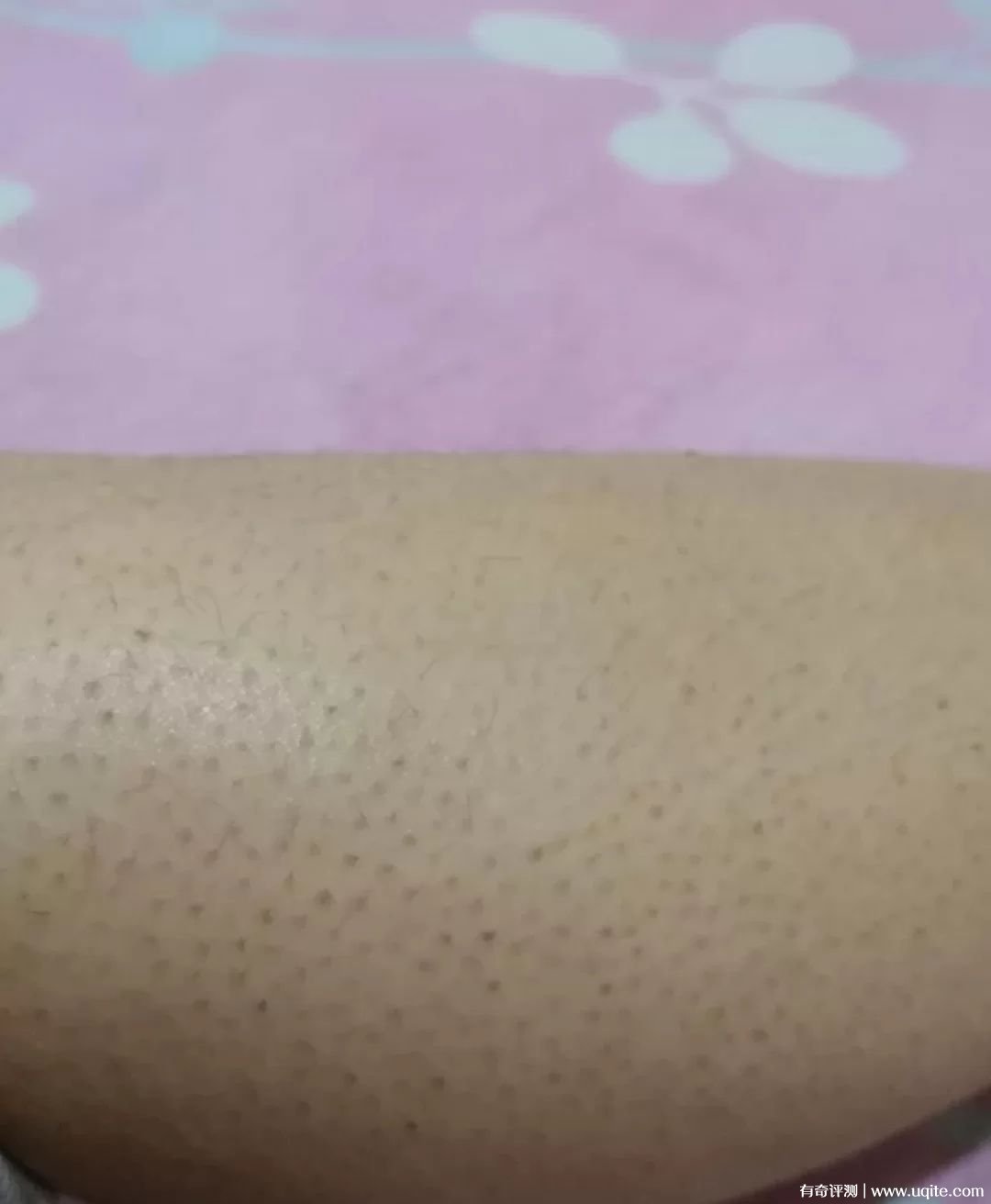 至于去雞皮膚方面,我堅持用了有快一個月了,基本兩天用一次,效果還不錯,整體皮膚順滑了些,雞皮疙瘩還是有,但沒那么密集了。