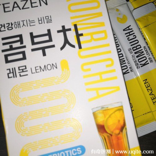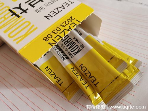 Teazen康普茶的口味還蠻多的,我買的是檸檬味(我閨蜜強(qiáng)烈要求我買檸檬味),它一盒里面有10條,這個(gè)分量還蠻不錯(cuò)的,打開之后就是撲鼻而來(lái)的檸檬味,聞著還蠻不錯(cuò)的。