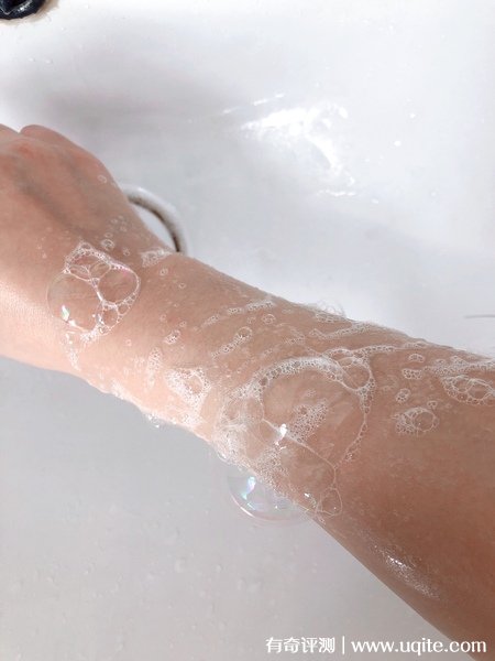 圣艾芙磨砂膏沐浴露質地很細膩,沐浴露中間夾雜著一些顆粒,用著不疼。起泡性也不錯,純手打隨便揉搓揉搓都有不少泡泡。