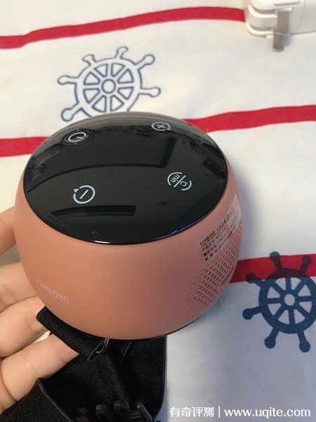 允寶智能無(wú)煙艾灸儀實(shí)物構(gòu)造其實(shí)還挺簡(jiǎn)單的感覺(jué),把艾餅放進(jìn)去,選擇溫度、時(shí)間就可以用了。那個(gè)繩子長(zhǎng)度可以調(diào)節(jié),手腕這種細(xì)的地方和腰上這種比較粗的部位都可以用,很穩(wěn)。