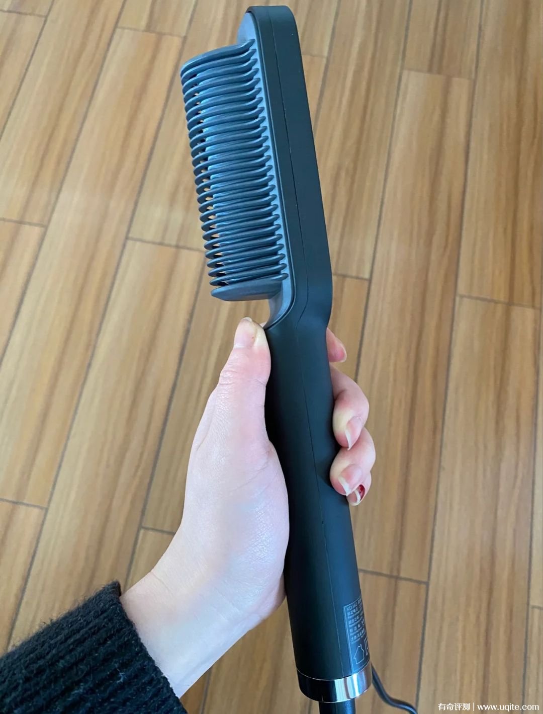 金稻直發(fā)梳實(shí)物比夾板要重一點(diǎn),摸起來很有質(zhì)感,做工也挺精致的。我頭發(fā)并不粗,是受損比較嚴(yán)重的類型,所以5檔溫度里面,一般用1檔就完全夠了。它加熱速度很快,具體不清楚(因?yàn)槲乙矝]法感受它到底熱沒熱),但是用的時(shí)候用頭發(fā)試探了下,是比夾板快的,半分鐘不到。而且它真的是隔熱的,摸上去沒有明顯感覺,就溫溫的,應(yīng)該是梳齒縫縫是熱的,然后起作用。