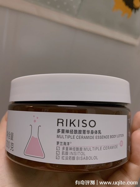 我之前去海邊玩,可能防曬不管用,皮膚曬紅了,后來感覺還挺干的,就決定大夏天的也用用身體乳(以前一直覺得麻煩,冬天都很少用)。rikiso這個牌子是在網(wǎng)上種草的,看到說他們家產(chǎn)品成分挺好,又看這身體乳是神經(jīng)酰胺的,對這個成分不陌生,就買了。
