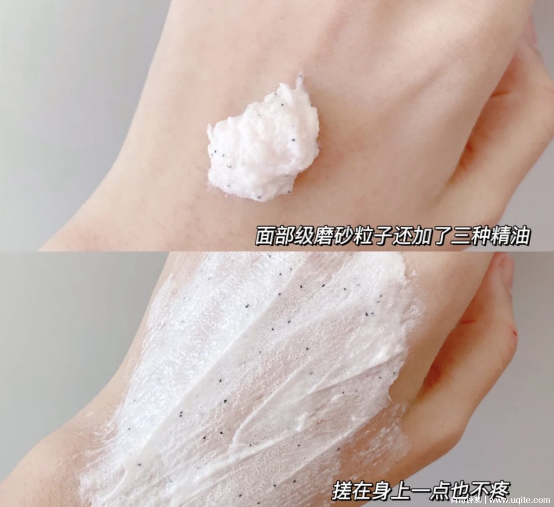 IN磨砂膏顆粒細(xì)膩,用著潤潤的,不疼它沖洗還挺方便的,隨便沖沖就干凈了,沒有那種沖完很多遍水還是打滑的感覺。擦干后皮膚不干燥不緊繃,摸著細(xì)膩順滑。去角質(zhì)效果可以,偶爾用身體乳,會吸收得更快。用了段時間,雞皮疙瘩都沒有了,也沒再長起來。