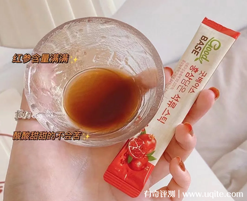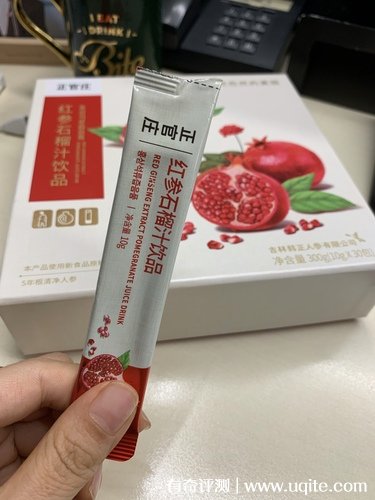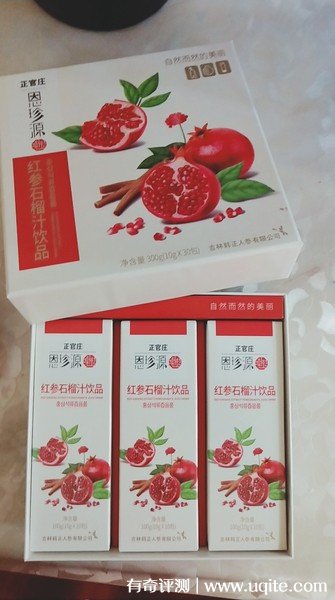 我一般都是早上起來之后喝這款正官莊紅參飲,然后它的味道還算OK,紅參的香味和紅石榴的香味,都還挺濃郁的,入口偏酸甜口感,喝起來可以接受。