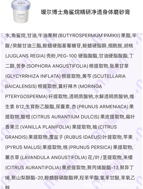 璦爾博士磨砂膏打開之后它的味道還蠻好聞的,香味比較淡,聞著不膩人,而且我也在網(wǎng)上查了一下它的成分,還是蠻溫和安全的,沒有添加什么刺激性的成分。