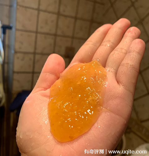 這款白媽生姜洗發(fā)水就還挺大一罐的,里面的洗發(fā)水質(zhì)地是橙黃色的,而且還可以看到不少細(xì)碎的小生姜顆粒。在使用時,這款白媽生姜洗發(fā)水的味道不算難聞,是可以接受的那種。