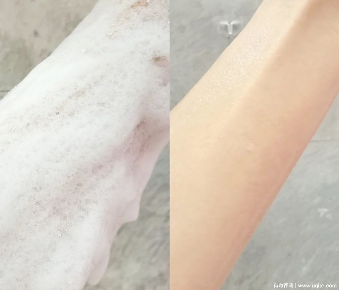 它是透明質(zhì)地,起泡性不錯,隨便用浴球就打出了很綿密的泡泡,用著舒舒服服的。用完后身上摸著潤潤的,不拔干,保濕效果也不錯,偶爾偷懶不用身體乳,皮膚摸著都還是比平時嫩滑一點。
