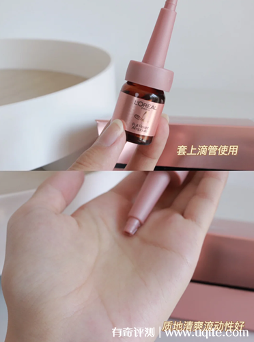 使用時,這款歐萊雅安瓶精華液是有配備長滴管的,安裝上以后,用起來就會很方便,精華液是透明的質(zhì)地,流動性就還挺強的,但是涂抹之后很好吸收,沒有油膩粘黏的情況。