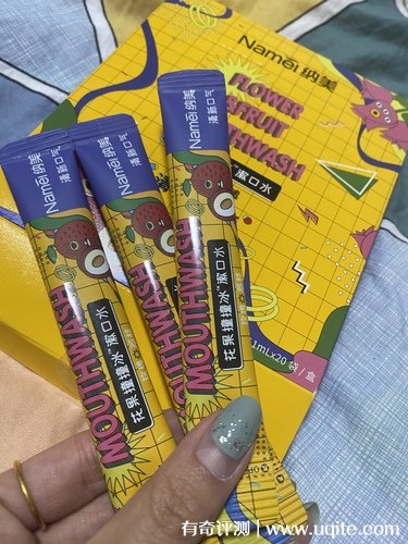 我入手的這款納美漱口水是條形包裝的設計,然后它一盒里面是二十條,平常出門攜帶就還挺方便的。使用時,這款納美漱口水是花香水果味的,不含酒精。