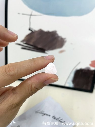 美白丸打開以后,里面還有一層塑料包裝,而且是有封口條的,所以完全不用擔(dān)心存放問題。這款上官格格美白丸體積挺小巧的,是三角形的樣子,聞起來沒有異味,入口也很好吞服,就還挺不錯的。
