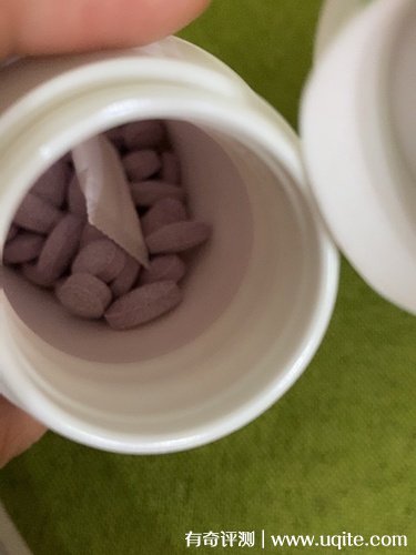 這款湯臣倍健葉黃素一瓶里面是60粒藥片裝,藥片的顏色是紫色的,而且顆粒不大,聞起來有一股藍莓的味道,就還挺不錯的。