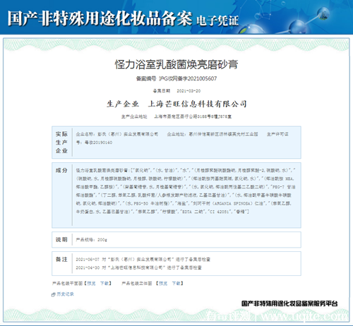 怪力浴室隸屬于上海芒旺信息科技有限公司旗下,是一家國產新銳個人護理品牌,雖然名氣不算很高的,但是該品牌聯(lián)合世界前三的酵母大公司安琪酵母共同研發(fā)合作,并且依托其技術能力,得到了廣大消費者的關注和認可。其中怪力浴室海鹽果酸乳酸菌煥亮磨砂膏,就是他們家口碑很不錯的產品之一,下面就來看看這款怪力浴室磨砂膏怎么樣。