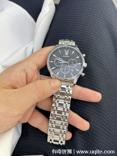 而且這款花花公子男士手表除了外圍的全時(shí)刻表盤(pán)以外,內(nèi)部還設(shè)計(jì)了三個(gè)針眼表盤(pán),可以單獨(dú)用于計(jì)算時(shí)、分、秒,這樣時(shí)間走表精準(zhǔn)度會(huì)更高。手表的表帶是精鋼表鏈,寬度大小也是剛好適合男士佩戴的那種,就挺不錯(cuò)的。