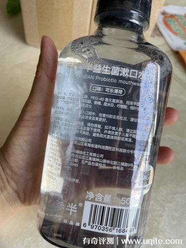 使用時(shí),可以用漱口水的瓶蓋倒大半蓋然后入口含漱,這款參半男士漱口水入口之后很溫和,沒(méi)有辣嘴刺激的感覺(jué),而且還有一股淡淡的可樂(lè)薄荷的味道,就還挺不錯(cuò)的。