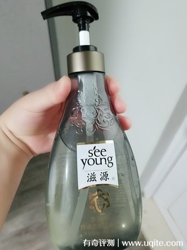 這款滋源水楊酸洗發(fā)水外包裝設(shè)計(jì)很好看,瓶身上面有懸浮式的花紋,摸著很有質(zhì)感,使用時(shí)按壓頭的設(shè)計(jì)就挺方便控制使用量的。滋源水楊酸洗發(fā)水質(zhì)地透明,而且香味很好聞,是偏花香調(diào)的。