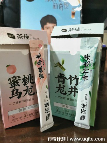 Teaplus茶佳漱口水我買的是三盒裝的,里面的味道也不一樣,有蜜桃味、抹茶味和龍井味,它的包裝我也還蠻喜歡的,都是獨立的包裝,用著還蠻方便,出門也好攜帶。