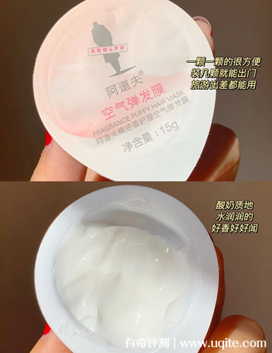 這款阿道夫發(fā)膜包裝顏值就挺高的,而且都是獨立的膠囊杯包裝,像平時出門攜帶什么的就很方便。發(fā)膜的質(zhì)地是乳白的,有點像酸奶的質(zhì)感,聞起來香味很好聞,感覺就很不錯的樣子。