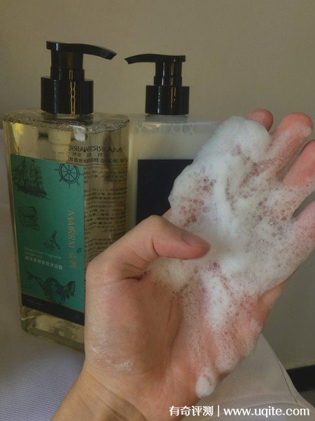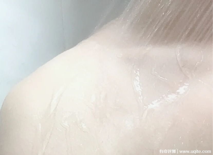 它起泡性不錯(cuò),用浴花隨便揉揉就很綿密的泡泡,用著很舒服,沖洗不麻煩,不假滑,想搓澡也可以,不像有些沐浴露用了,完全使不上力。我前胸后背油脂多,洗完都被帶走了,身上清清爽爽的,也不拔干。