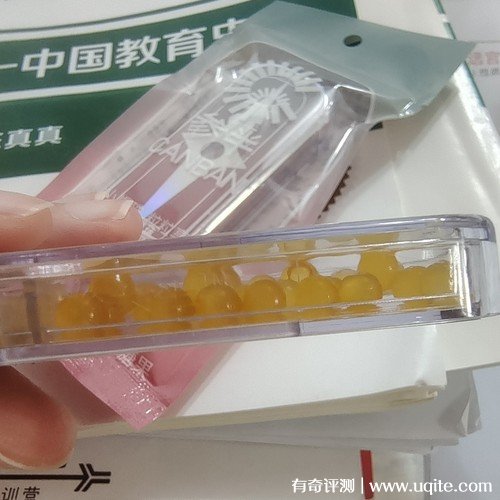 參半口腔爆珠每一盒里面是30粒產(chǎn)品,體積就挺小巧的,每次要用時輕推盒蓋就會出來一粒,使用起來就比較衛(wèi)生??谇槐槁勂饋砦兜肋€挺不錯的,入口以后口感溫和,沒有辣嘴的情況出現(xiàn),并且還帶有一點清涼的感覺,就還挺提神醒腦的。