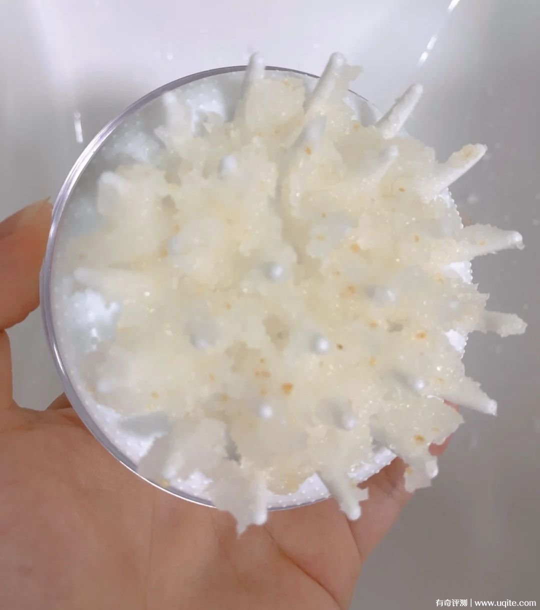 meloe頭皮磨砂膏香味挺好聞的,青檸香味,很清新。磨砂顆??粗癖骋粯?,顆粒比較大,但不硌人,打磨得挺好的,用著清潔感明顯,感覺按摩過程中,頭皮感覺越來越輕松。它和洗發(fā)水一樣,是可以起泡的,泡沫很綿密。