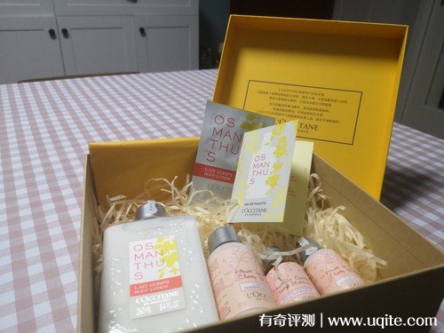 歐舒丹身體乳到手之后它還送了一些贈品,它打開之后的味道聞著也不錯,淡淡的桂花清香,不膩人,香味也還算持久,隔天還能聞到點,睡衣上味道好久不會散。