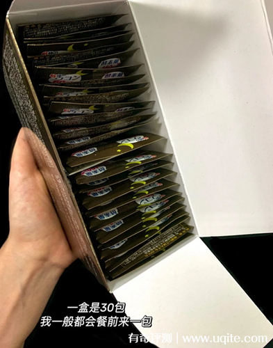 這款新谷酵素黑金加強(qiáng)版酵素是盒裝的,拆開以后里面一共有30小包產(chǎn)品,每一包里面是6粒藥片(也是一次的食用劑量),所以平時(shí)出門攜帶就會(huì)方便很多。