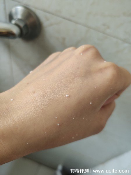 半畝花田去角質(zhì)啫喱的質(zhì)地很水乳,不厚重,上臉比較清爽,我都是直接干手干臉搓的(按摩打圈),用著不疼。它在臉上搓著搓著就會(huì)形成灰黑色的小顆粒,看著還挺臟的。