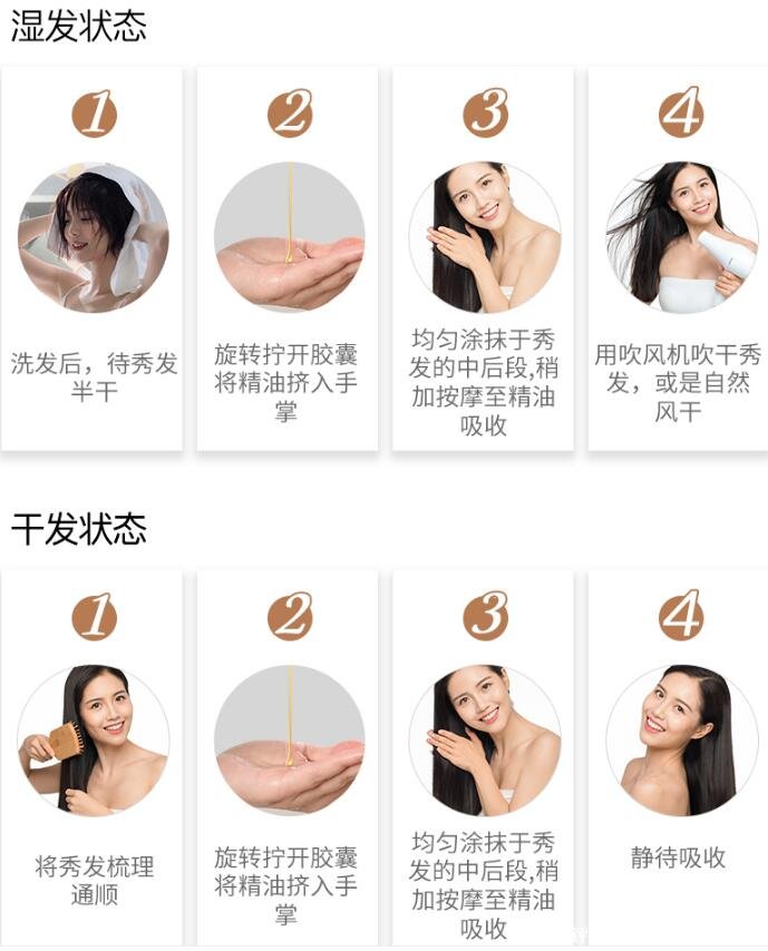 意立詩護發(fā)精油一顆的量不少,短發(fā)估計可以分兩次用。我長發(fā),可以抹比較多。質地來說是偏啫喱的感覺,油感并不重,用上后吸收也挺快的,我是頭發(fā)吹七八成干,抹勻過一會再吹吹。