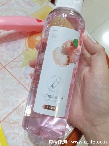 我入手的這款一枝漱口水是桃子味的,打開以后味道就還挺好聞,而且我看了一些產(chǎn)品的成分配方,它里面是不含氟、酒精和度米芬等成分的,所以使用前起來就還比較放心。