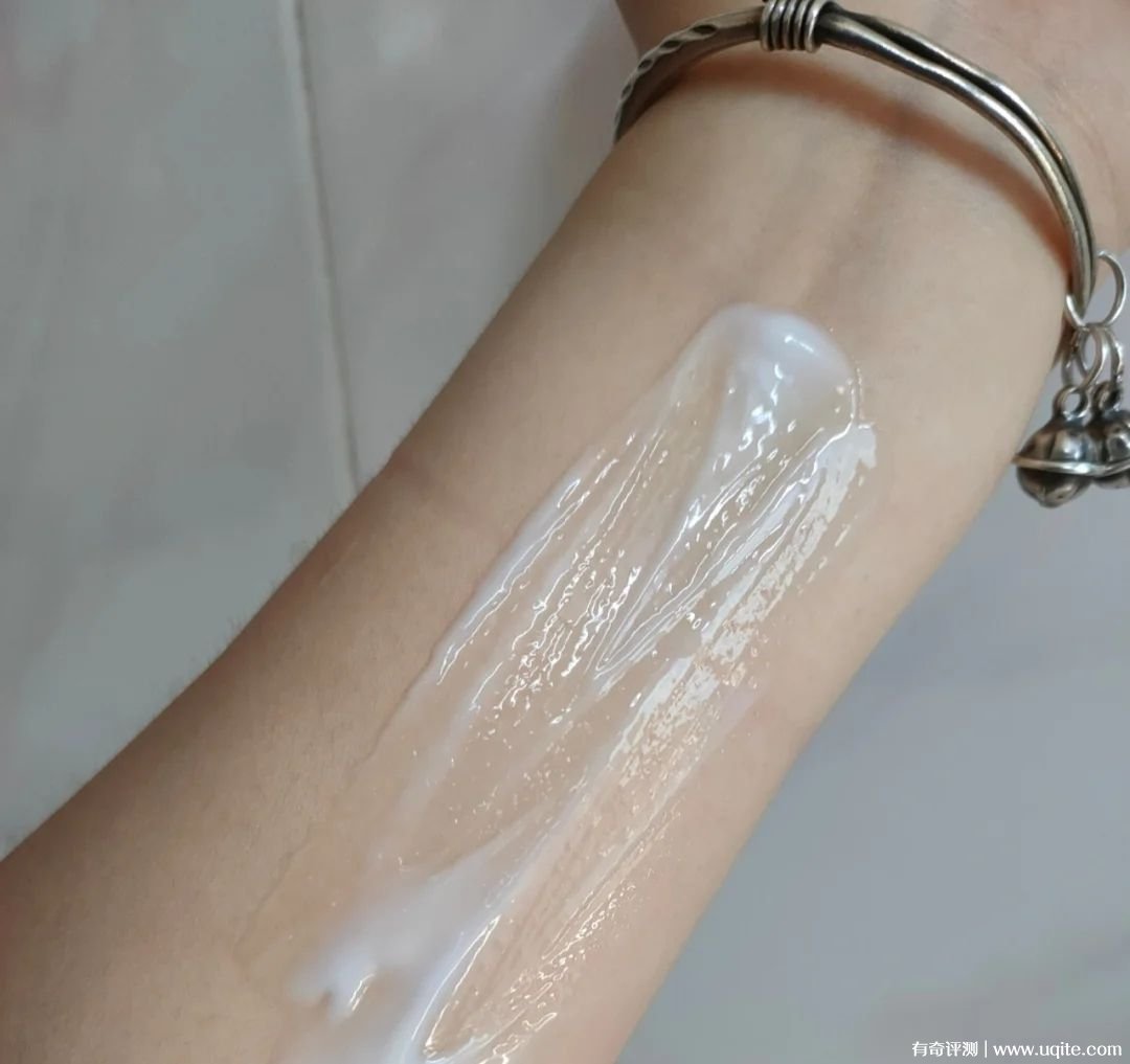 它質(zhì)地屬于比較稀的類型,有流動性,抹開很水潤,吸收速度快,膚感特別好,我很喜歡。用完皮膚水水嫩嫩的,摸著軟嫩細膩了不少。保濕方面也不錯,我就晚上洗澡后一次,用了一天皮膚手感都挺好,不會干。
