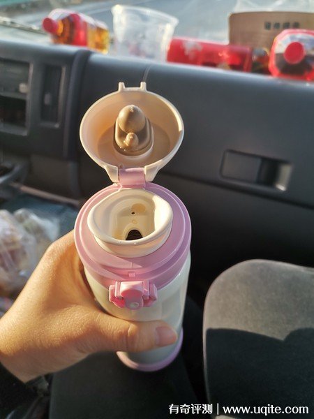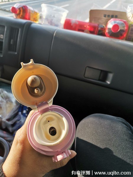 simita保溫杯杯子很好打開,掰下來后一按就可以彈跳開。整個(gè)蓋子也可以再擰開,里面有層塑料濾網(wǎng),不過我不用它泡茶,所以暫時(shí)還沒體會(huì)到它的作用。杯子剛拿到手的時(shí)候沒有異味,用開水泡了泡,沖了沖就用了。杯蓋很緊,不會(huì)漏水,