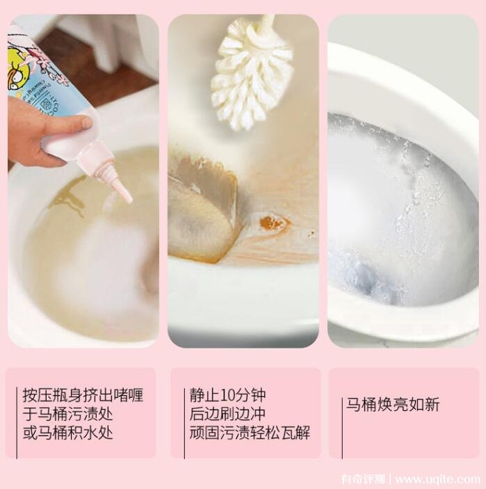 它是會慢慢膨脹的類型,用的時候只要大致擠幾圈就好了。我是放那里過二十來分鐘了再去沖水,最開始用的時候沖水過后還有點點黃色的污漬,但是刷子很輕松就刷下來了。后面再用,可能污漬沒那么久,不算牢固,不用刷子也可以弄干凈,用完后煥然一新的感覺。