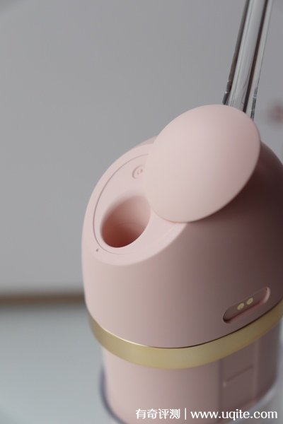 藍寶沖牙器實物很精致,粉粉的沒色差,充電口是磁吸的,很高級。注水口同時也可以收納噴嘴,然后可以和水箱儀器消毒殺菌,我基本每次用完都會殺個菌,雖然看不出效果,但莫名安心。