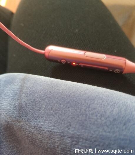 萬魔運動耳機所有的控制鍵都在這里,開關機、音量加大減小和充電口,東西很集中。未連接的時候是紅藍指示燈交替,連接藍牙是藍燈,充電時候是紅燈,這些都是比較好認的,連接藍牙的速度很快,所以也不用太在意,需要注意的是做了防水處理,所以不用擔心汗水和雨水的影響。