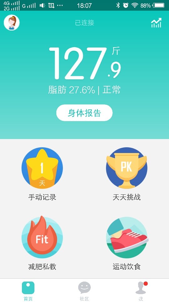 體重,脂肪等10多項指標就在手機里好輕的軟件里體現(xiàn)出來。