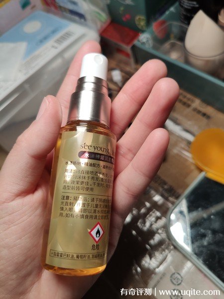 滋源護(hù)發(fā)精油味道是真的很不錯,果香味,越聞越喜歡。噴頭用著稍微有點(diǎn)問題,有時候按下去了,它不上來,還得自己提拉下,不過噴霧倒是細(xì)的。它質(zhì)地不油膩,輕微油感偏水狀質(zhì)地,抹上后吸收挺快的。