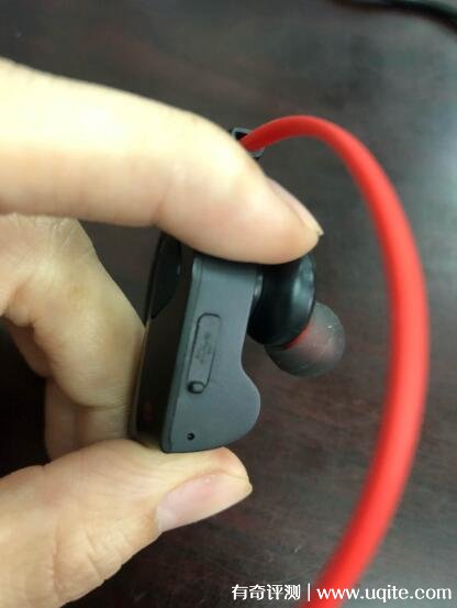 音量調節(jié)按鈕在左耳塞的側面,這樣看起來操作會有點不方便,但實際上佩戴鉑典藍牙耳機之后,很容易摸到調節(jié)音量,按鍵反應也很靈敏。充電口在耳機的下部,不影響美觀,有個防塵蓋,打開就可以充電,充滿不用一個小時,續(xù)航時間在五六個小時。