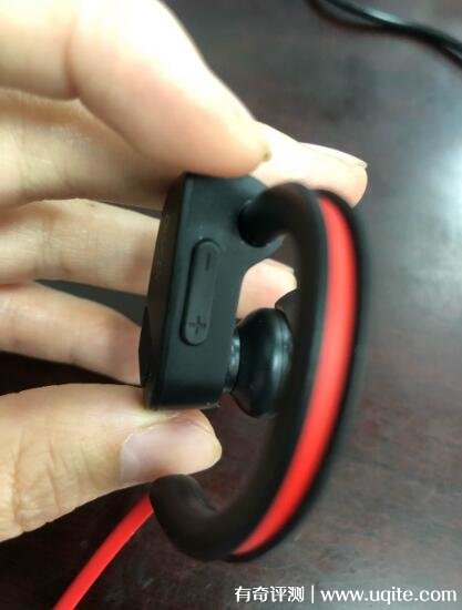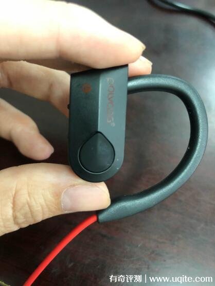 鉑典藍牙耳機的開關機按鈕在左耳機,雖然大,但并沒有影響美觀,用的是水滴造型,而不是傳統的圓餅。按鍵也很靈敏,長按就可以配對。