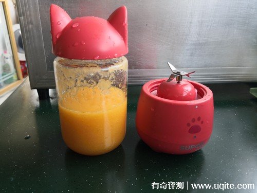 總結(jié):六七十塊錢買到這款蘇泊爾便攜式榨汁機(jī)還是挺劃算的,不僅整機(jī)比較小方便攜帶,而且一機(jī)雙杯,榨完汁趕時(shí)間的,可以直接換蓋子帶走,做到真正的便攜,而且打汁只需要十幾秒基本OK,速度快,打出來的果汁也比較細(xì)膩,有少量的果絮其實(shí)影響并不大,不過送的濾網(wǎng)并不太好用,如果要過濾的建議自己準(zhǔn)備濾網(wǎng)。