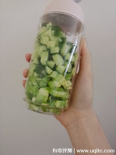 再來用小熊榨汁機(jī)試試比較硬的蔬菜,我用的是黃瓜加苦瓜,我也不喜歡苦瓜味,不過苦瓜功效多,所以加上一點(diǎn)清甜的黃瓜榨成汁,苦味就沒有那么重了。榨出來之后會有殘渣和泡沫,自己過濾一下就可以了,可惜沒有送的濾網(wǎng),需要自己準(zhǔn)備。不過清洗起來還比較方便,刀片蓋可以拆開單獨(dú)清洗。