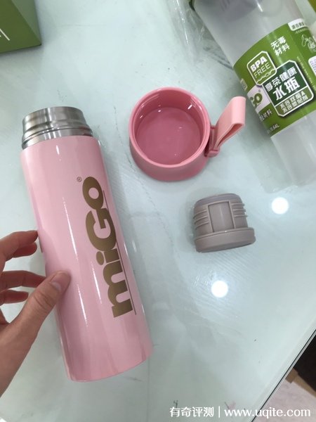 migo保溫杯質(zhì)感不錯(cuò),外層的漆挺牢的,用了挺久而且還磕到過(guò)桌子,但沒(méi)問(wèn)題。杯子蓋子設(shè)計(jì)比較特別,是旋轉(zhuǎn)蓋,外面還一層,蓋得嚴(yán)實(shí),有提手,帶去上班很方便,騎單車(chē)都不影響。杯子里面有304標(biāo)志,內(nèi)壁光滑,剛到手的時(shí)候沒(méi)異味,用開(kāi)水泡了泡,涮了涮就用了,杯口大,清洗很方便。